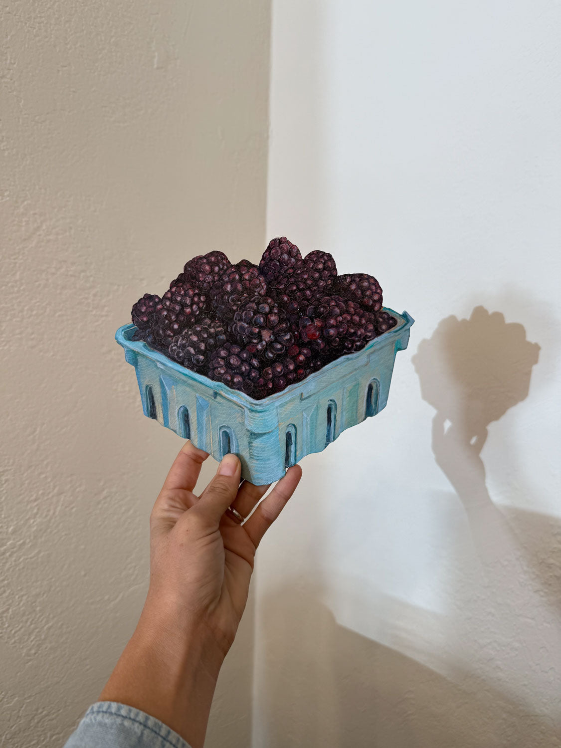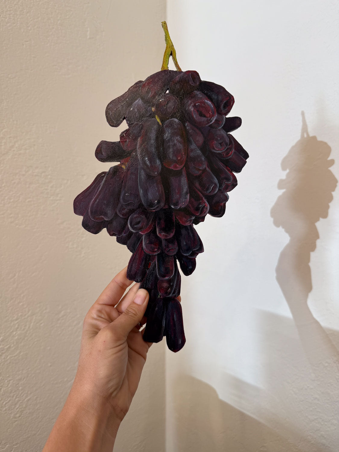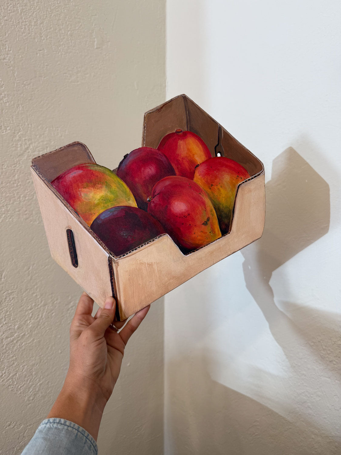 Choose between papaya, passion fruit, moondrop grapes, a bag of cuties, a peeled (and slightly sexy) tangerine, baskets of blackberries and strawberries, a bunch of bananas and a crate of mangos (whew). Gift them to your favorite Hannah banana (Sherrie Strawberry?) or bring home the group and hang them in smile inducing places all over the house.